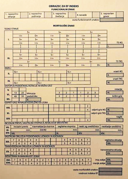 EF indeks izračuna ortodont na pregledu, ko pri otroku vzame odtis zgornjih in spodnjih zob. Na odtisih in z odčitavanjem ortopana naredi analizo stanja, ki je obvezna ortodontska storitev. S tem dobi število točk, ki jih dokumentira v zdravstveni karton pacienta.
